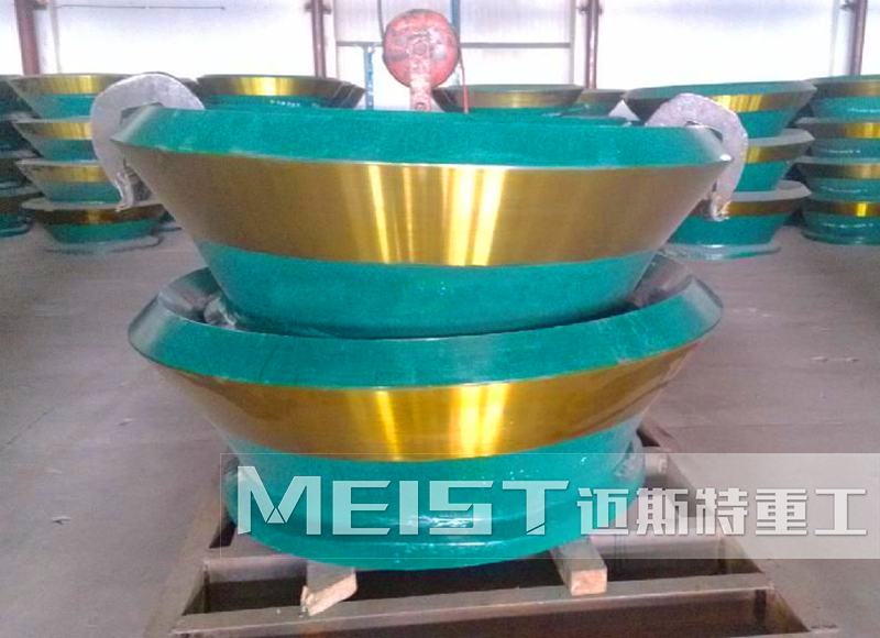 材質上采用Mn18Cr2材質,經(jīng)復合變質處理,細化晶粒,凈化晶界;鑄造中控制凝固方式,優(yōu)化熱處理工藝,鑄件硬度高,韌性好,抗沖擊耐磨,適用于大中型圓錐破碎機的工作。