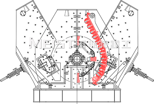★轉(zhuǎn)子兩側(cè)有對(duì)稱可調(diào)反擊架,能保證出料粒度,轉(zhuǎn)子直徑大,板錘錘柄長(zhǎng),細(xì)料比例高≤5mm占80%;