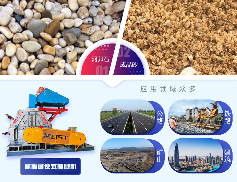 MTI系列歐版可逆式制砂機是邁斯特重工與土耳其工程師結(jié)合國內(nèi)礦石原料以及多年生產(chǎn)經(jīng)驗自主研發(fā)的一種新型的制砂設(shè)備。采用全新抽拉式反擊板、板錘。側(cè)開門設(shè)計。具有快捷更換易損件,設(shè)備使用面積少等優(yōu)勢。獨特的設(shè)計結(jié)構(gòu)和特殊密封結(jié)構(gòu)防止軸承筒漏油等工藝,新型制砂設(shè)備具有節(jié)能,產(chǎn)量大、應(yīng)用廣泛等特點,助力大砂場逐步向規(guī)模化、集中化生產(chǎn)邁進,以滿足國家對環(huán)保及產(chǎn)能的要求。